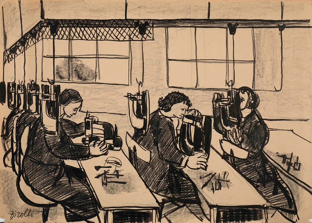 Renato Birolli (1905-1959), Necchi. Reparto montaggio matita grassa e china...