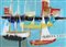 Enrico Paolucci (1901-1999), Marina con vele tempera su tela, cm 46x65 firmato in basso a destra