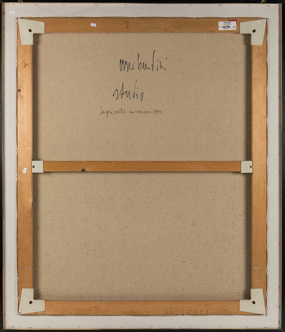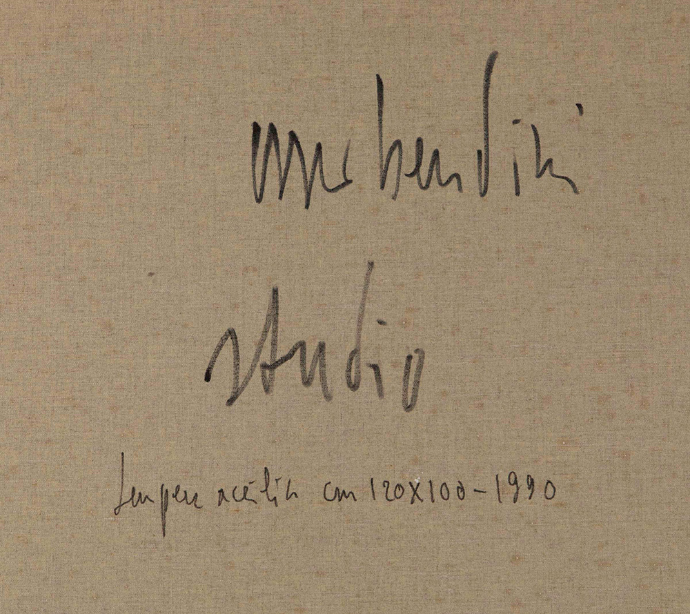 Vasco Bendini (1922-2015), Studio, 1990 acrilici su tela, cm 120x100 firmato, intitolato e datato al retro Autentica su fotografia dell'artista Pubblicazioni: Catalogo Vasco Bendini opere 1950-2015 l'opera è in buono stato di conservazione