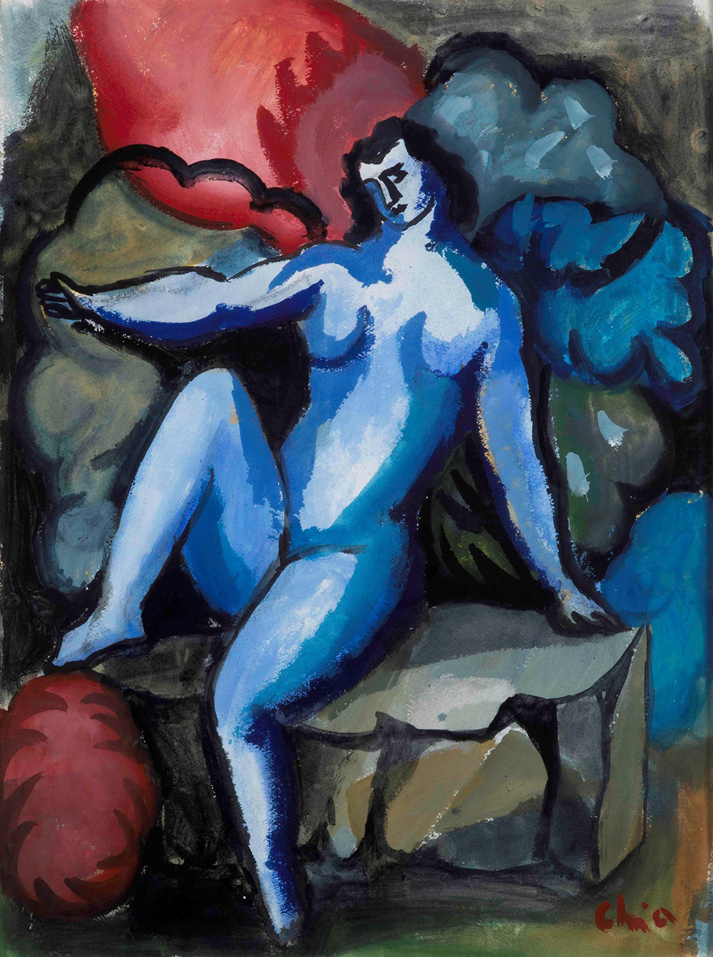 Sandro Chia (1946), Figura in azzurro, 2005 tecnica mista su carta, cm 80x60 firmato in basso a destra Autentica su fotografia dell’artista L’opera si presenta in buono stato conservativo