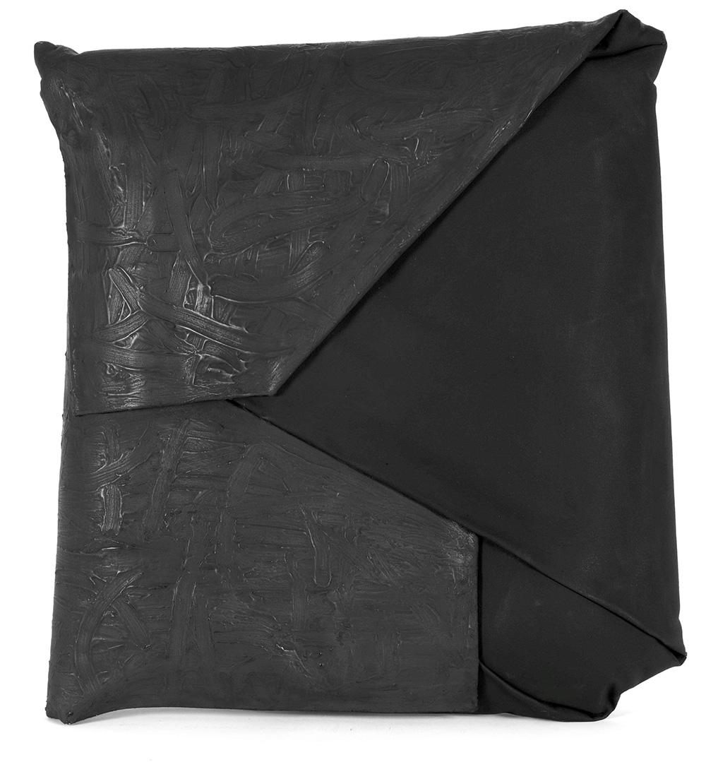 Cesare Berlingeri (1948), Dipinto nero piegato, 2003 tecnica mista su tela piegata, cm 62x66x15 firmato, intitolato e datato al retro Opera registrata presso l'Archivio delle opere di Berlingeri, con il n. f 3107-0673 Provenienza: Collezione privata, Milano Dante Vecchiato Galleria d'Arte, Padova