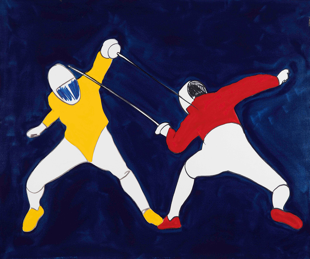 Marco Lodola (1955), Senza titolo smalti e tecnica mista su tela, cm 100x121 firmato in alto sulla tela Autentica su fotografia Difetti L’opera presenta uno strappo nell’angolo superiore destro di cm 4, facilmente restaurabile
