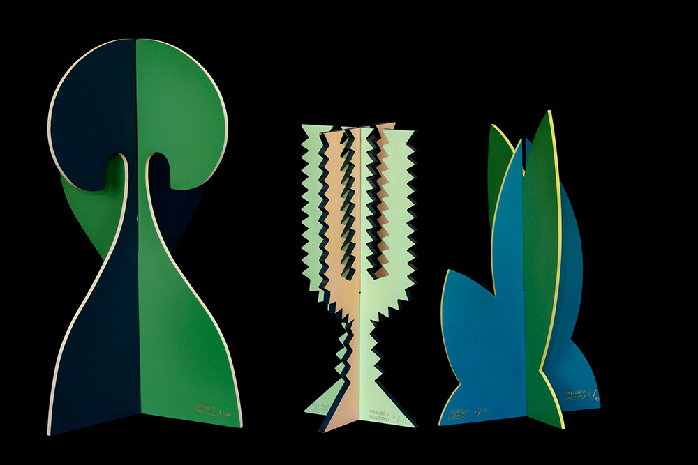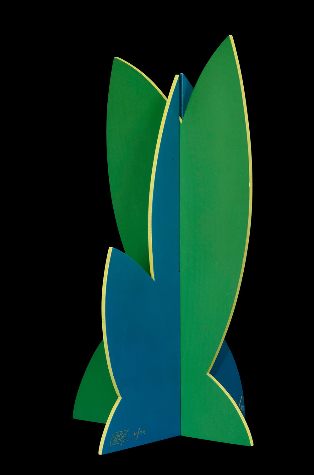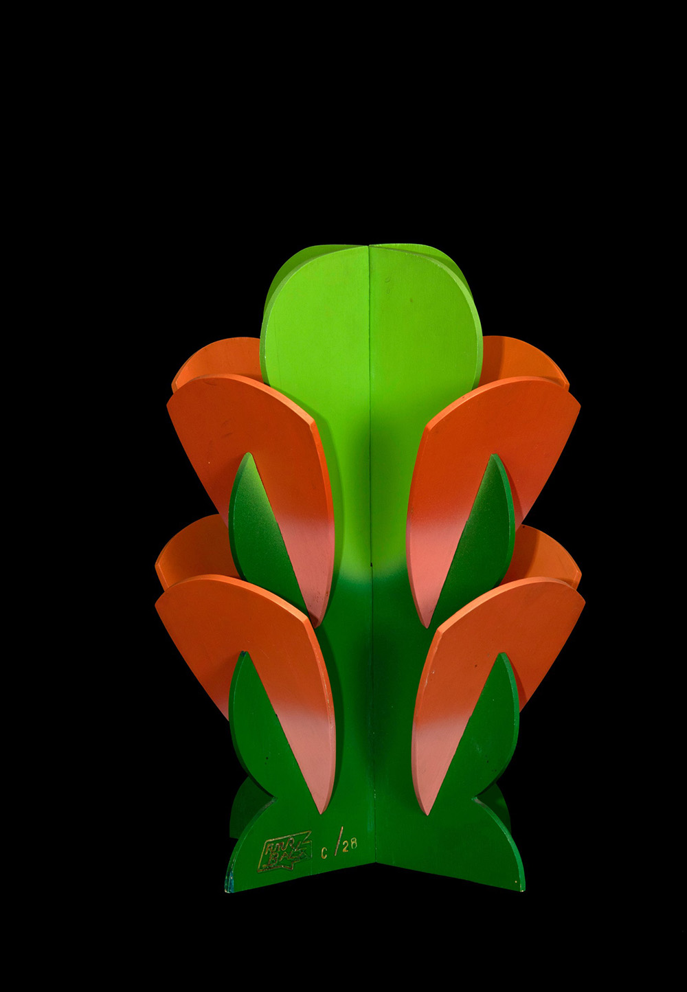 Giacomo Balla (1871-1958), Fiore futurista, 1916-1930 legno e cartone colorato, cm 28 es. 18/40 L’opera riporta il punzone originale FuturBalla, la dicitura C ed il contrassegno numerico dell’opera 28 Fiore futurista, 1916-1930 legno e cartone colorato, cm 48 es. 9/40 L’opera riporta il punzone originale FuturBalla, la dicitura M ed il contrassegno numerico dell’opera 48 Le opere sono accompagnate dal certificato di autenticità delle eredi Giacomo Balla.