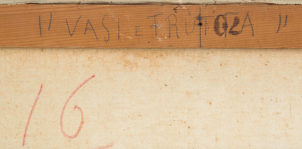 Ottone Rosai (1885 - 1957), Vasi e frutta, 1954 ca olio su tela, cm 50x69,7...
