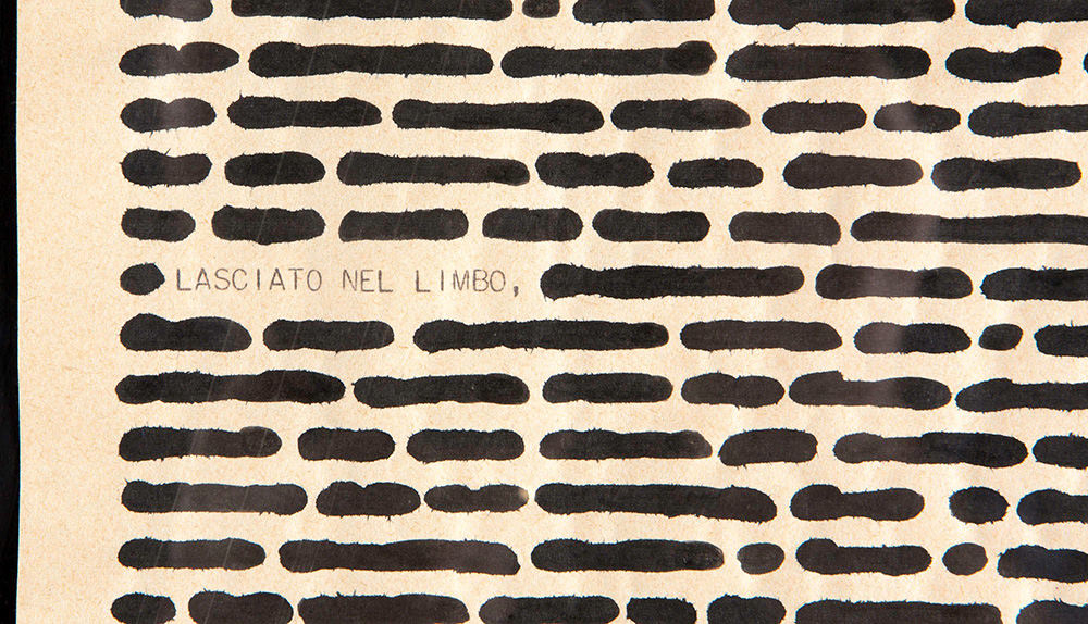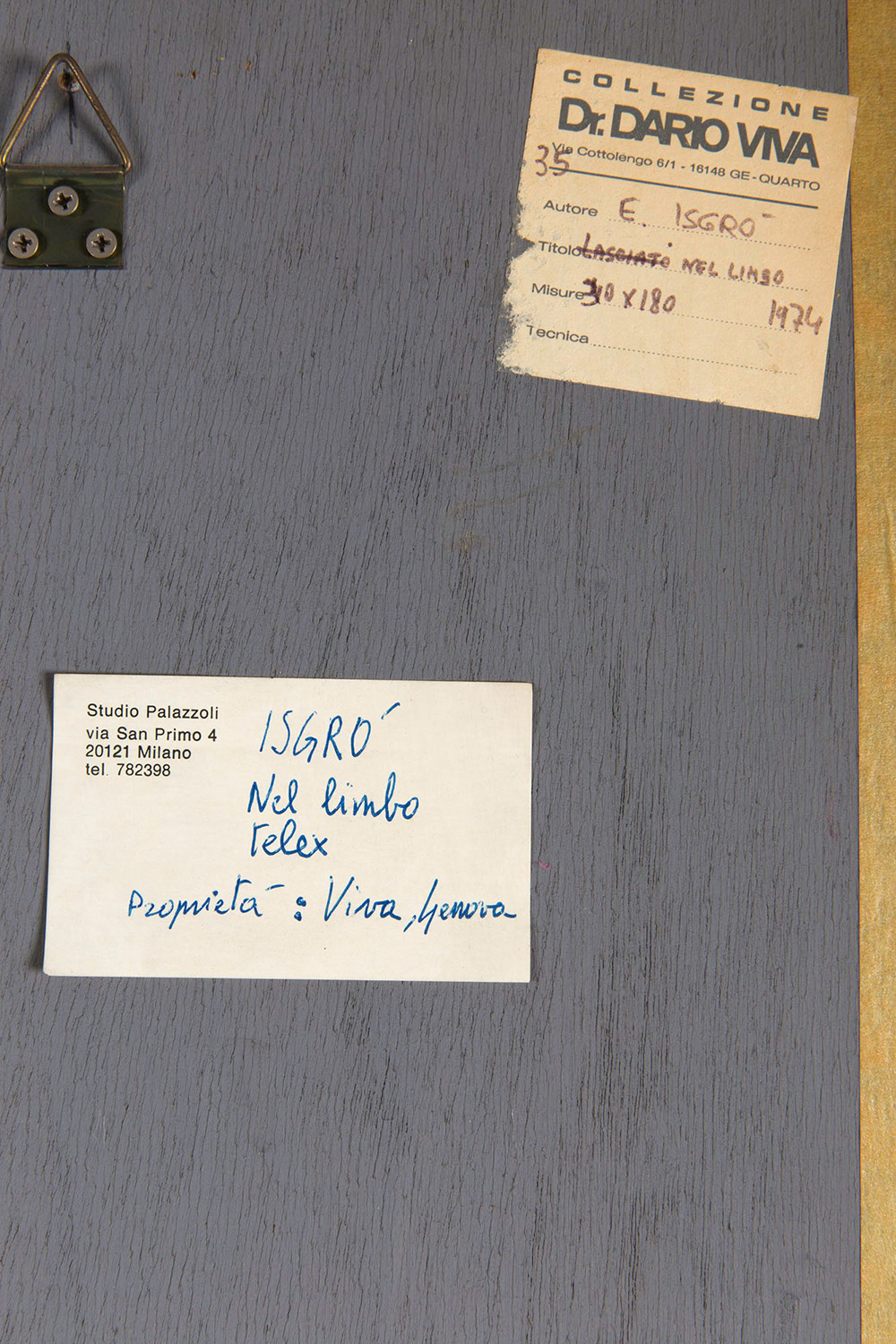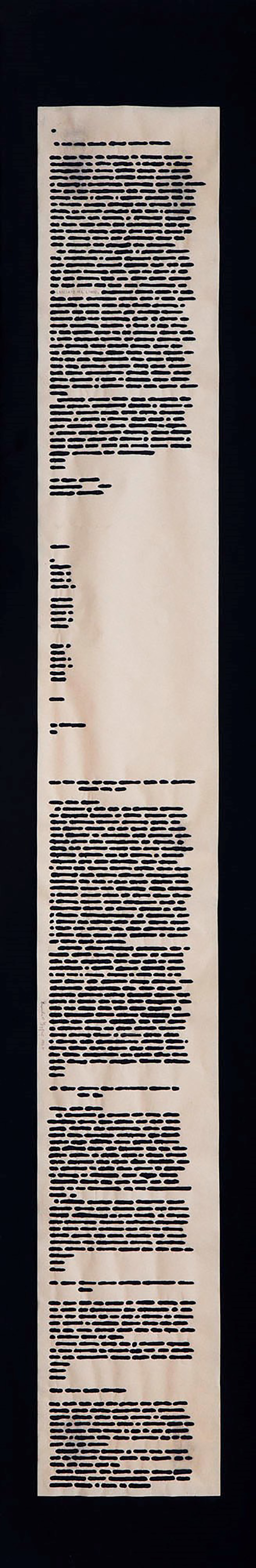 Emilio Isgro (1937), Nel limbo, 1974 telex cancellato, cm 181x30 firmato e datato al centro a sinistra intitolato al retro Etichetta al retro dello Studio Luca Palazzoli, Milano Registrato presso l’Archivio Emilio Isgrò con il n. A5 ex 164020
