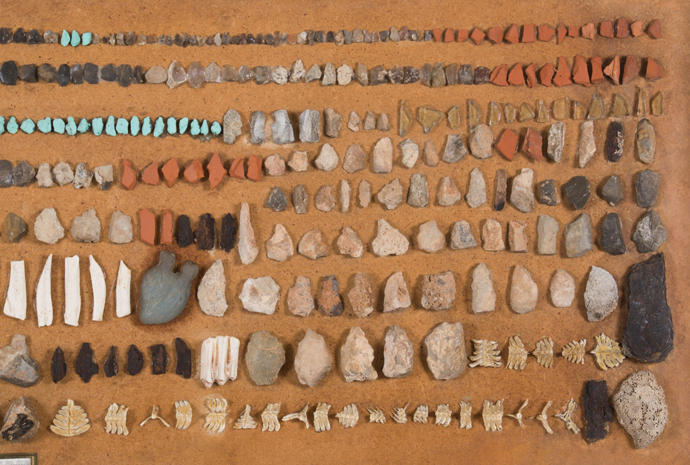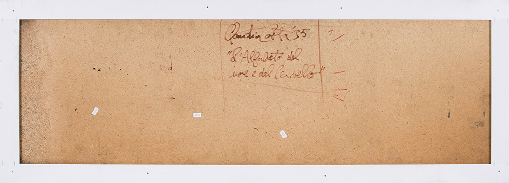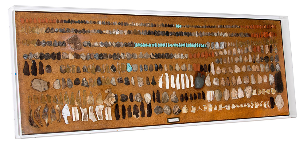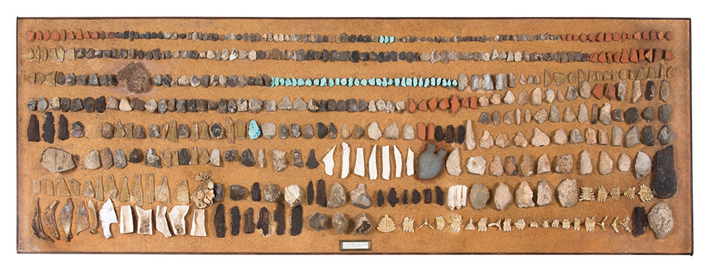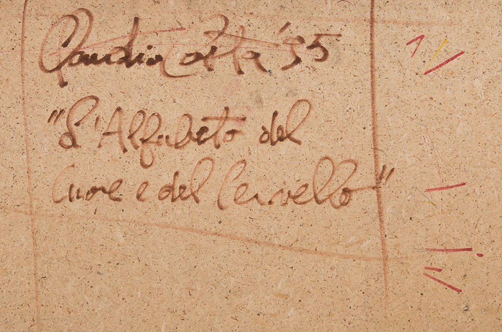 Claudio Costa (1942-1995), L’alfabeto del cuore e del cervello, 1995 pietre e ossa su tavola, cm 52x146 firmato, intitolato e datato al retro Autentica su fotografia a cura di Anita Solange Costa Provenienza: Collezione privata, Milano L’opera presenta lieve muffa al retro, nel complesso è in buono stato conservativo