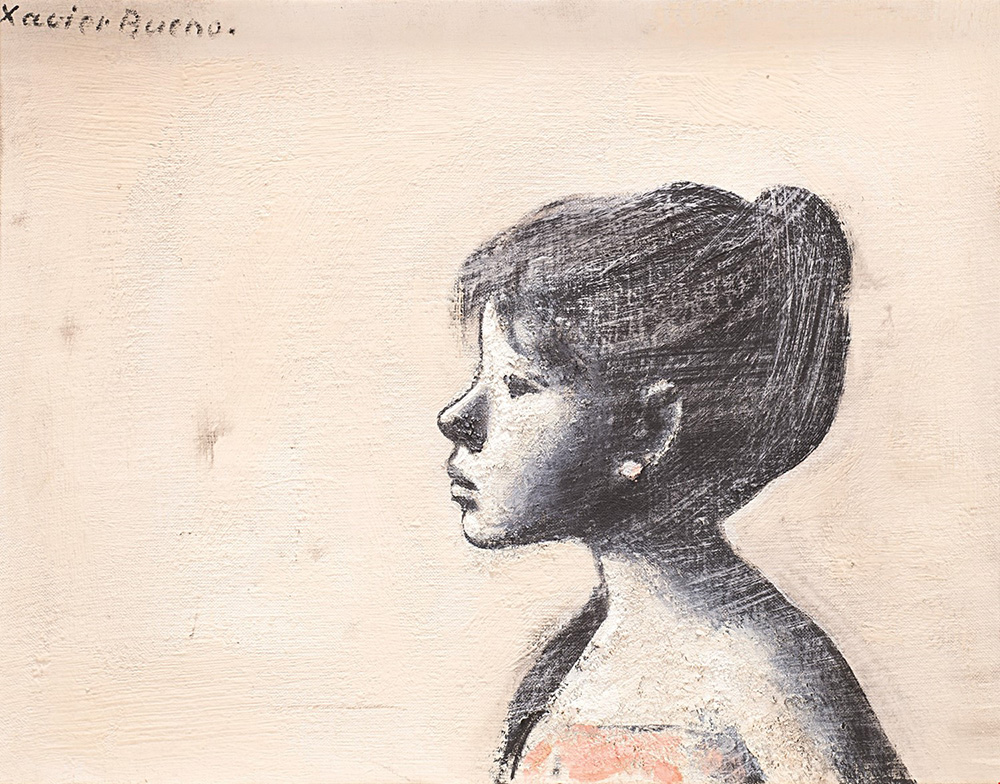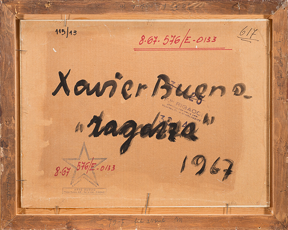 Xavier Bueno (1915-1979), Ragazza, 1967, olio su cartone, cm 30x39,5 Firmato in alto a sinistra: Xavier Bueno Firmato, titolato e datato al verso: Xavier Bueno, "ragazza", 1967 Collezione privata.