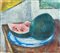 Ardengo Soffici (1879-1964), Natura morta con anguria, 1962 ca , olio su cartoncino applicato su tavola di compensato , 44,5x49,5 Firmato in basso a sinistra: SOFFICI Prato, Galleria d'Arte Farsetti, (n. d'archivio 21251); Brescia, Galleria d'Arte Schreiber (timbro al verso); collezione privata.