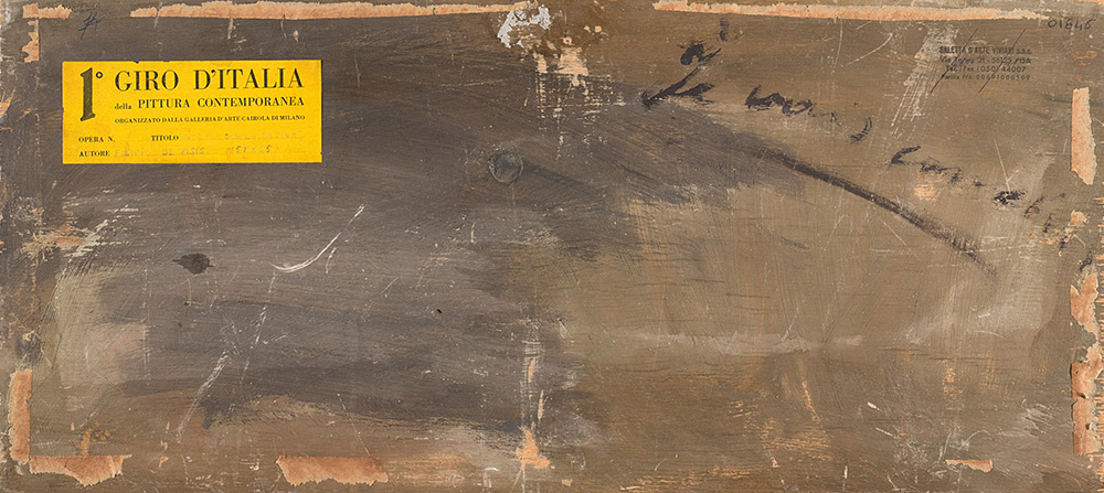 Filippo De Pisis (1896-1956), Interno con la tavola, olio su tavola, cm 57,2x25 Firmato in basso a destra: De Pisis Venezia, Galleria d'Arte Sandri (etichetta al verso); Pisa, Saletta d'Arte Viviani (timbro al verso); collezione privata. Milano, Galleria d'Arte Cairola, Primo Giro d'Italia della pittura contemporanea (etichetta al verso); check anno
