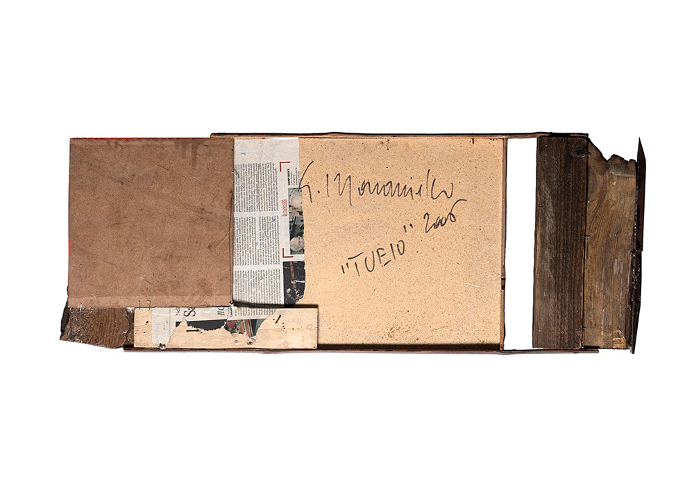 Giuseppe Maraniello (1945), Tu e io, 2006, tecnica mista su legno, cm 26x69 Firmato, datato e titolato al verso: G. Maraniello 2006 "TU E IO" Collezione privata.