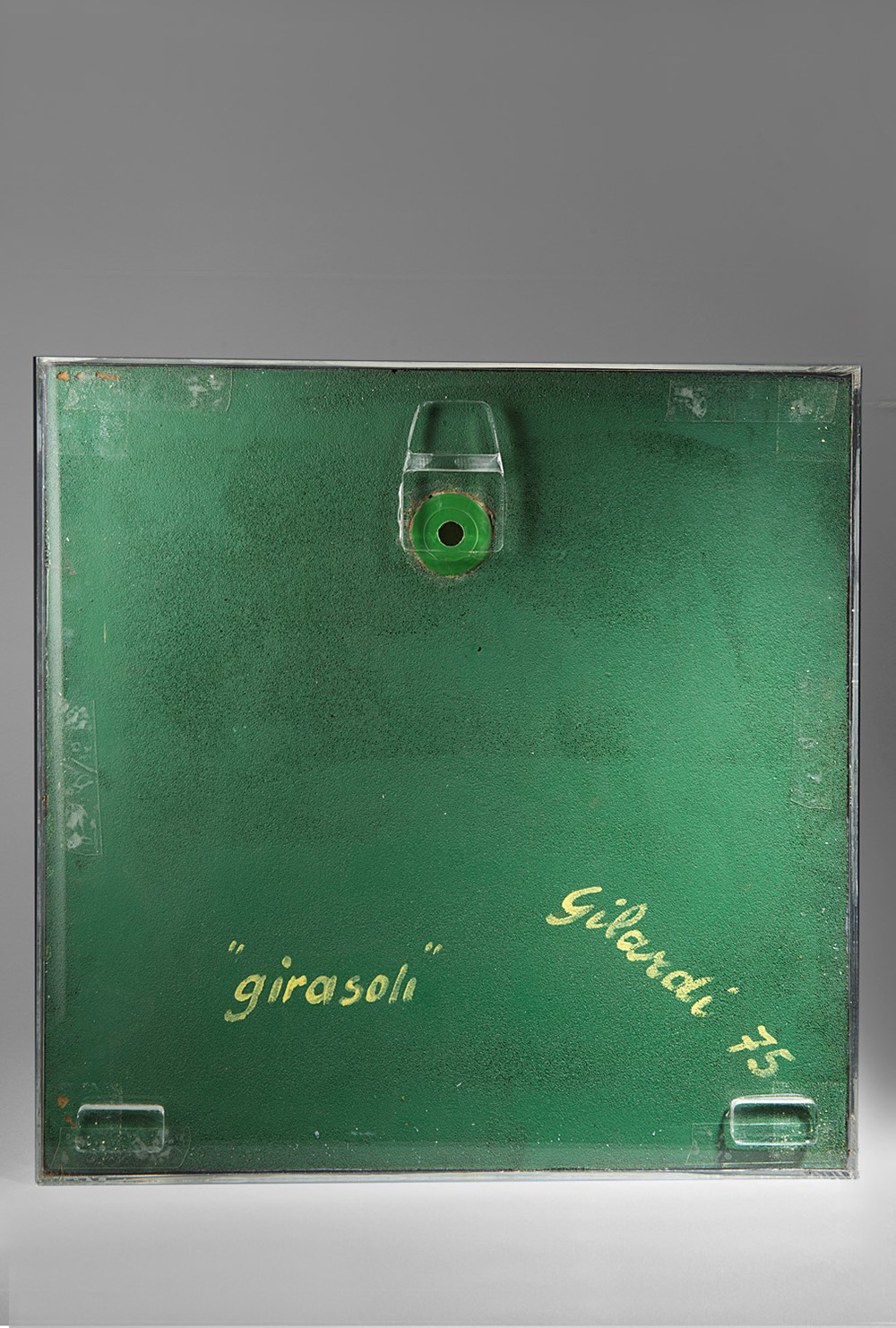 Piero Gilardi (1945), Girasoli, 1975, poliuretano espanso in teca di plexiglass, cm 50x50x30 Titolato, firmato e datato al verso: "girasoli" Gilardi '75 Torino, collezione privata.