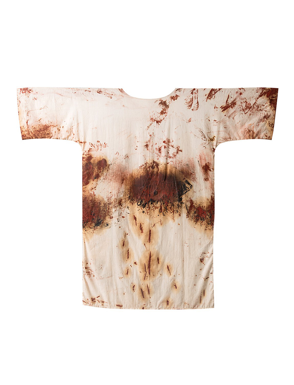 Hermann Nitsch (1938), Relitto, 1990, olio e sangue su camicia di tela, cm 121x159,5 Firmato e datato in basso a destra: Nitsch 1990 Collezione privata.