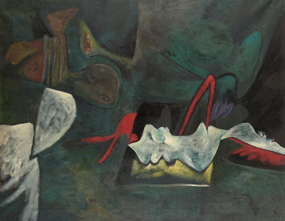 Gianni Dova (1925-1991), Interno verde, 1960, olio su tela, CM 130X165 Titolato, firmato e datato al verso sul telaio: "Interno verde", dova g. 60 Collezione privata.