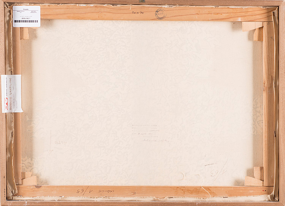 Antonio Sanfilippo (1923 1923-1980), Senza titolo, 1965, tempera su tela, cm 50x70 Roma, Galleria Edieuropa (etichetta al verso); collezione privata.