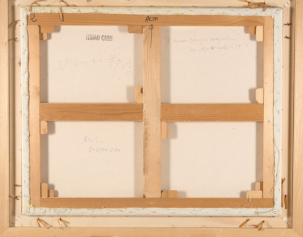 Hsiao Chin (1935), Il nuovo campo magnetico spirituale - 15, acrilico su tela, cm 80x100 Titolato al verso: "Il nuovo campo magnetico spirituale - 15" Timbro al verso: HSIAO CHIN Collezione privata.