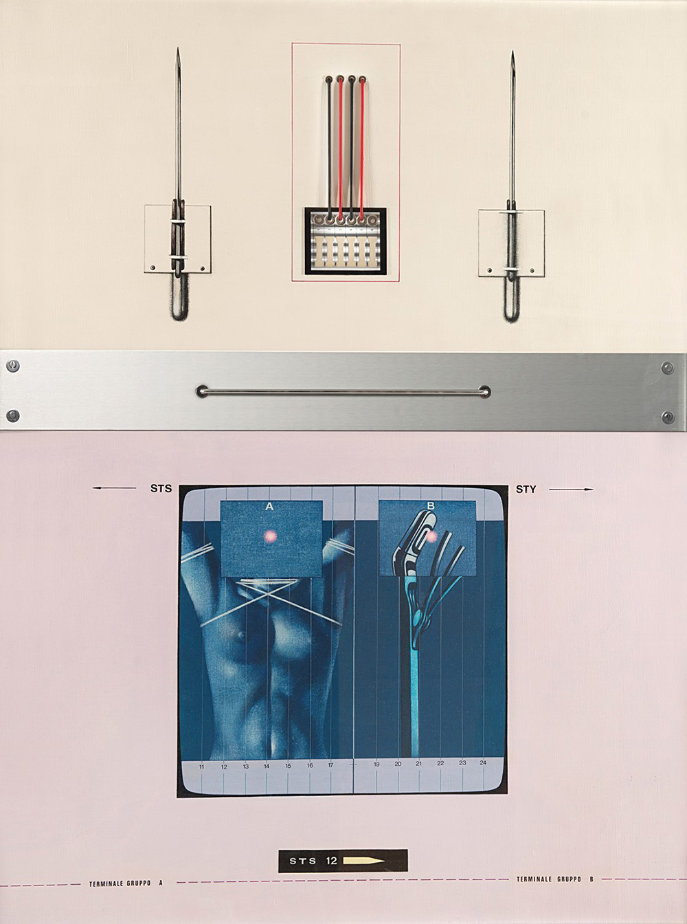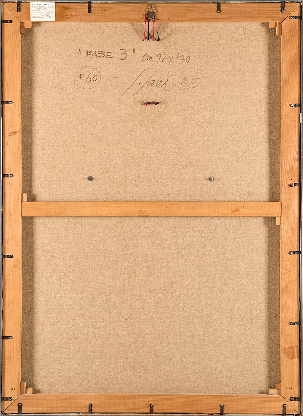 Sergio Sarri (1938), Fase 3, 1975, tecnica mista su tela , cm 130x97 Titolato, firmato e datato al verso: "c Milano, Galleria Annunciata (etichetta al verso); collezione privata.