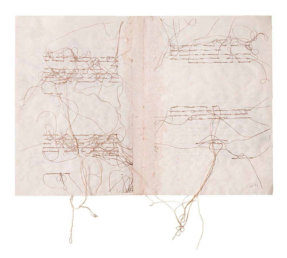 Maria Lai (1919-2013), Pagina scritta, 1980, fio, carta, cm 31x21,5 (L'opera...