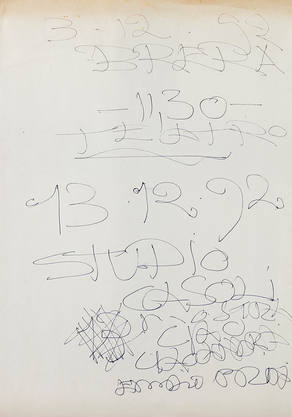 Lotto 189 | Emilio Prini (1943-2016), Senza titolo, 1992, biro su carta , cm 30x21...