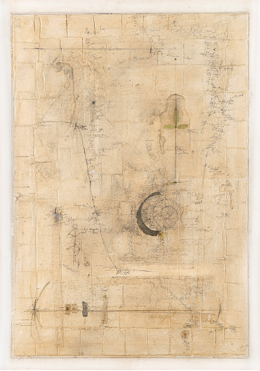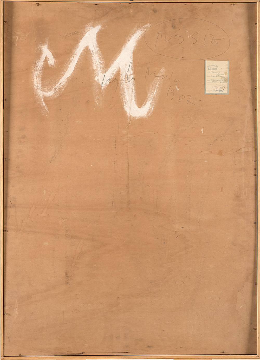 Magdalo Mussio (1925-2006), Senza titolo, 1987, tecnica mista su compensato, cm 110x80 Firmato e datato al verso: Magdalo Mussio 1987 Milano, Centro Culturale d'Arte Bellora (etichetta al verso); collezione privata.