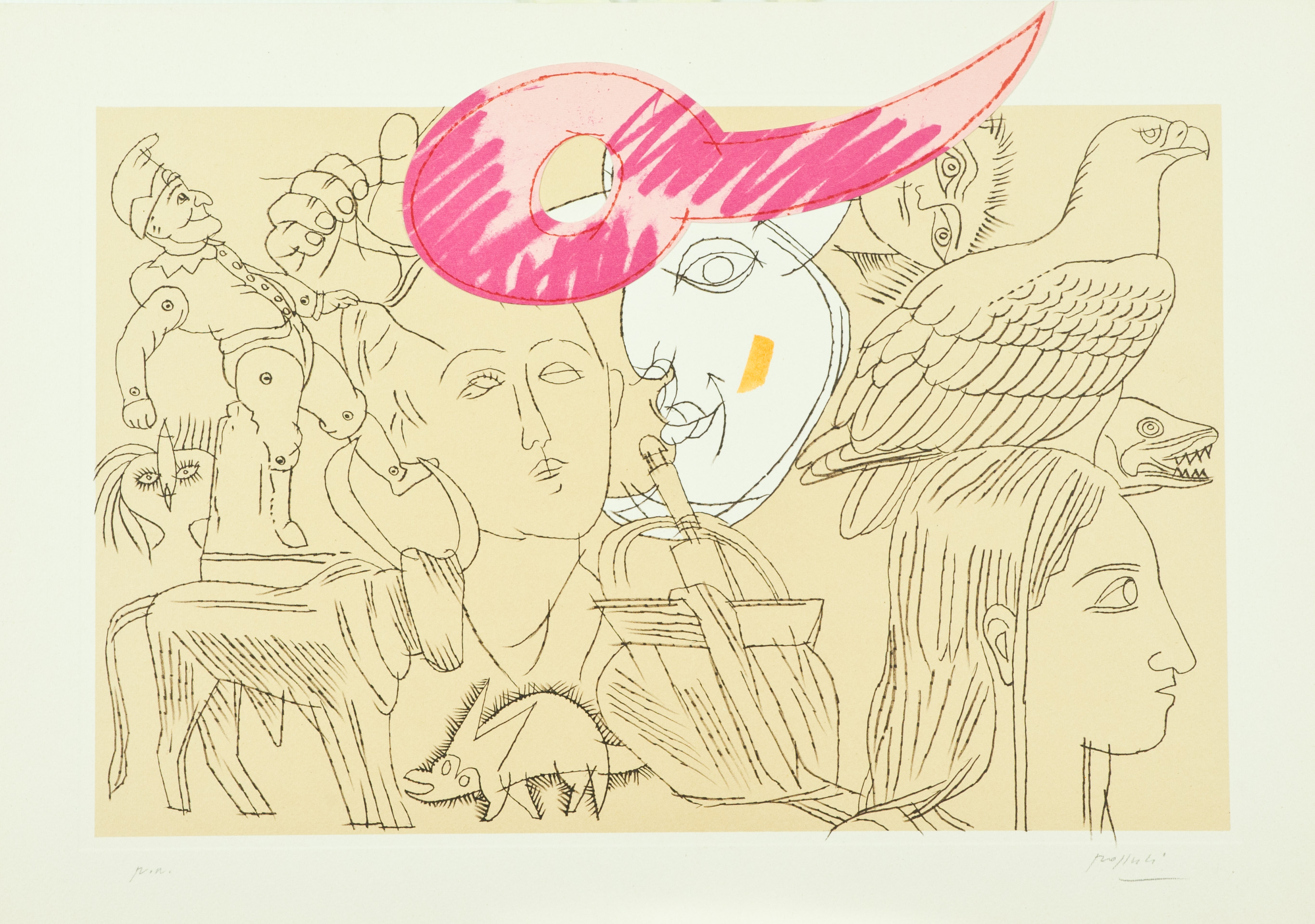 Mazzon Galliano, Pozzati Concetto Lotto unico di due Opere - "Galliano Mazzon", Senza titolo, 1968, Serigrafia su carta, cm. 44,5x32, es. 32/90, firma e data in basso a destra, tiratura in basso a sinistra, La carta presenta una piegatura sul lato destro; - "Concetto Pozzati", Senza titolo, Acquaforte e collage su carta, cm. 35x50, es. P.A., firmato in basso a destra.
