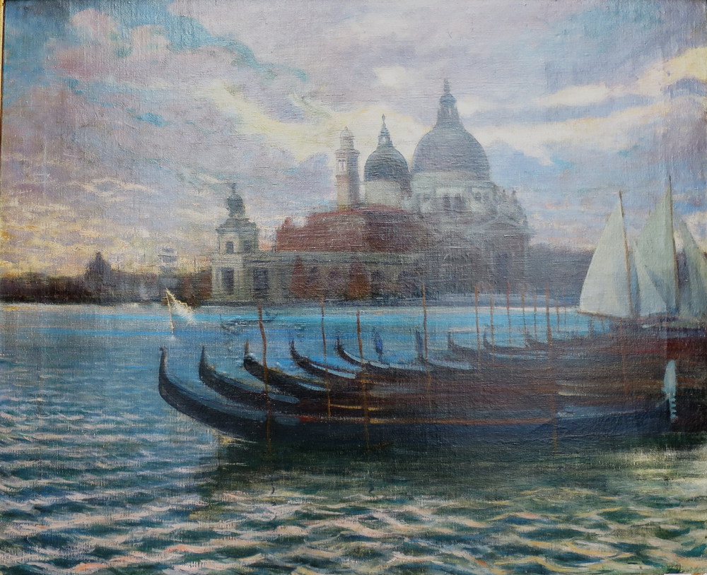 FRANCESCO DANIELI, Francesco Danieli (1852/1922) olio su tela raff. "Basilica Santa Maria della Salute - Venezia" - cm 91 x 74.5 - firmato in basso a dx