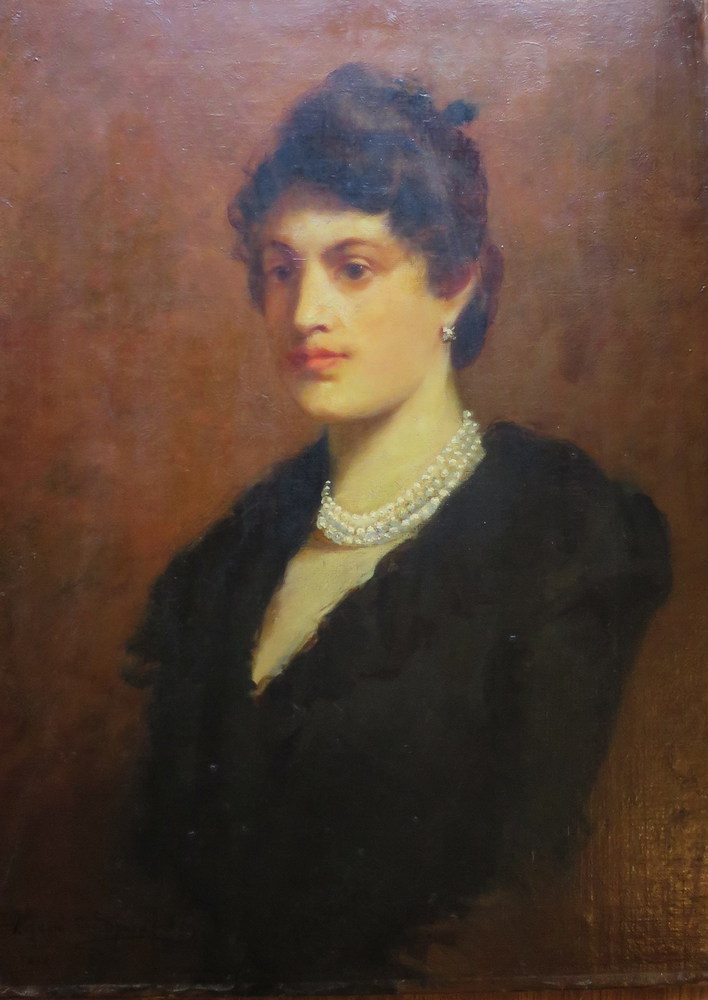 EUGENIO SPREAFICO, Eugenio Spreafico (1856/1919) olio su tela raff. "Gentildonna" - cm 55 x 75 - firmato e datato 1887 in basso a sx
