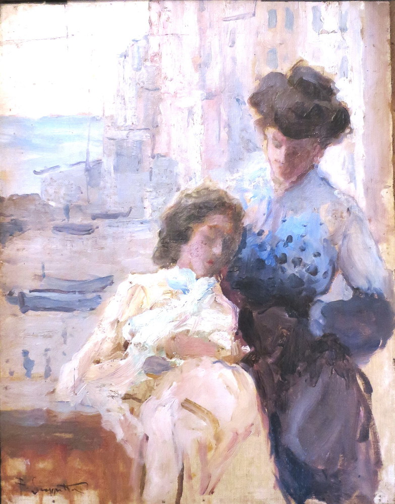 Lotto 28 | PIETRO SCOPETTA, Pietro Scopetta (1863/1920) olio su tela raff. "Maternit�"...
