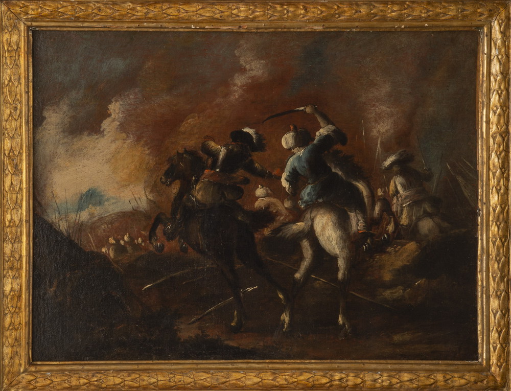 Lotto 31 | MATTEO STOM, Matteo Stom (maestro e aiuti) olio su tela "Battaglia" - cm 52 x...