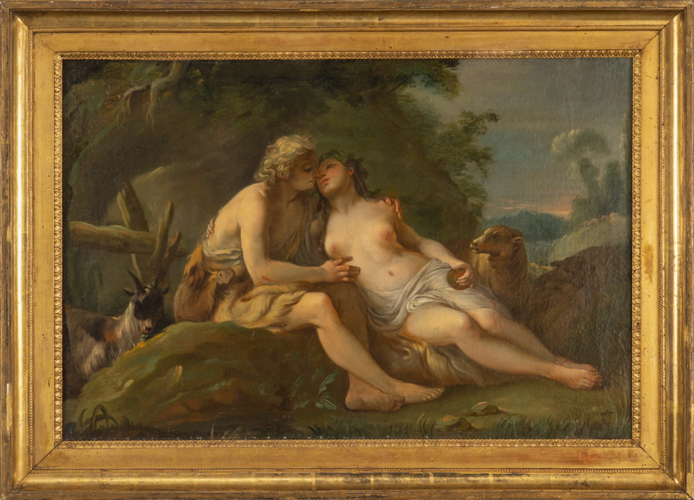 FRANCOIS RENE JOLLAIN, Francois Rene Jollain "Paride ed Elena" - XIX sec. olio su tela - cm 50 x 75