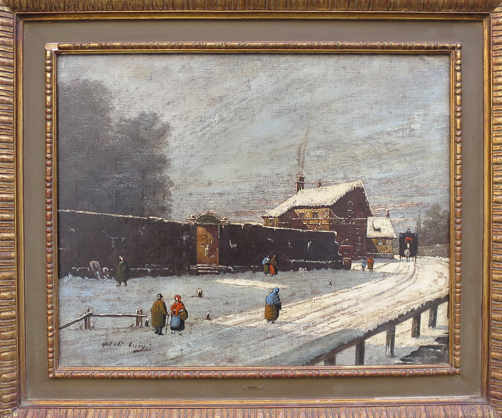 NATALI LUIGI, Dipinto olio su tela raff. "nevicata con figure" firmato in basso a destra cm 50x40