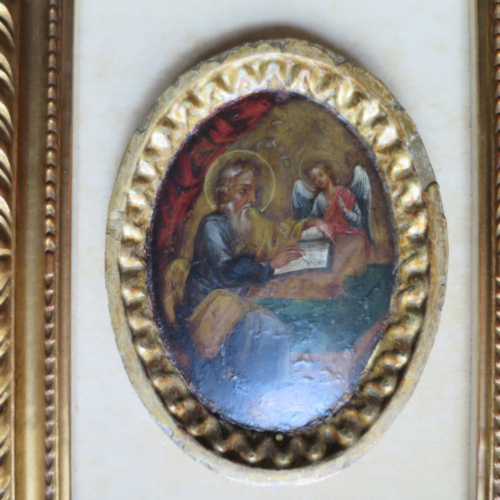 DIPINTO, Dipinto olio su tavola raffigurante "San Matteo" cm 21x15 in ovale....