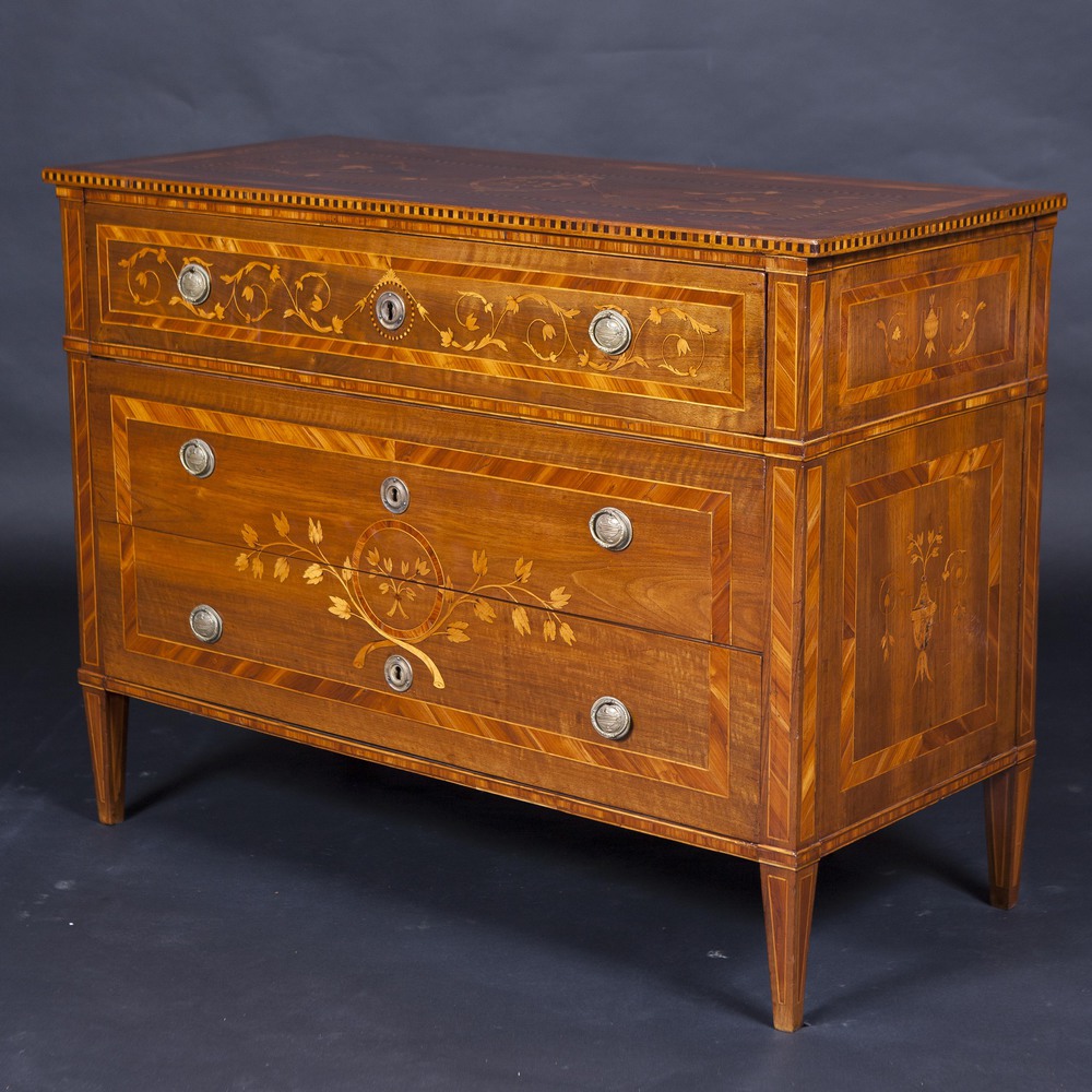 Lotto 68 | CASSETTONE, Cassettone a tre cassetti in legno di noce lastronato ed...