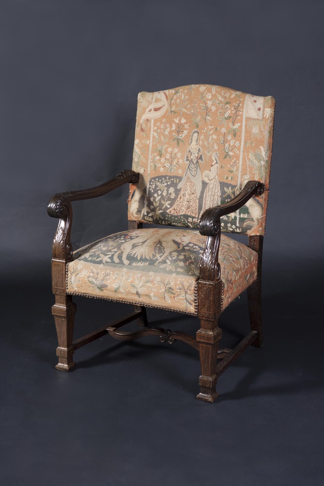 Lotto 70 | POLTRONA, Poltrona con braccioli in palissandro, presenza di filettature ad...