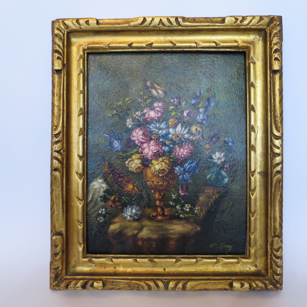 DIPINTO, Dipinto olio su tela fissato su tavola raff. "Natura morta di fiori in vaso" firmato in basso a destra Francia 1930 ca - cm 23.9 x 29.5