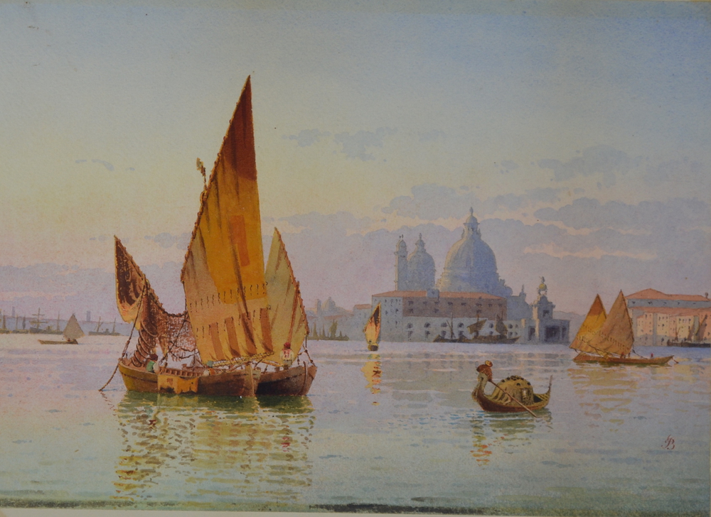 LUIGI BISI, Luigi Bisi acquerello su carta raff. "Barche a Venezia" - cm 26 x 37 - siglato LB in basso a dx