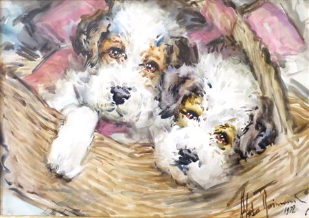 ALDO RAIMONDI, Aldo Raimondi 1902/1998 acquerello raff. "Cuccioli" - cm 50 x 35.5 - firmato e datato 1972 in basso a destra
