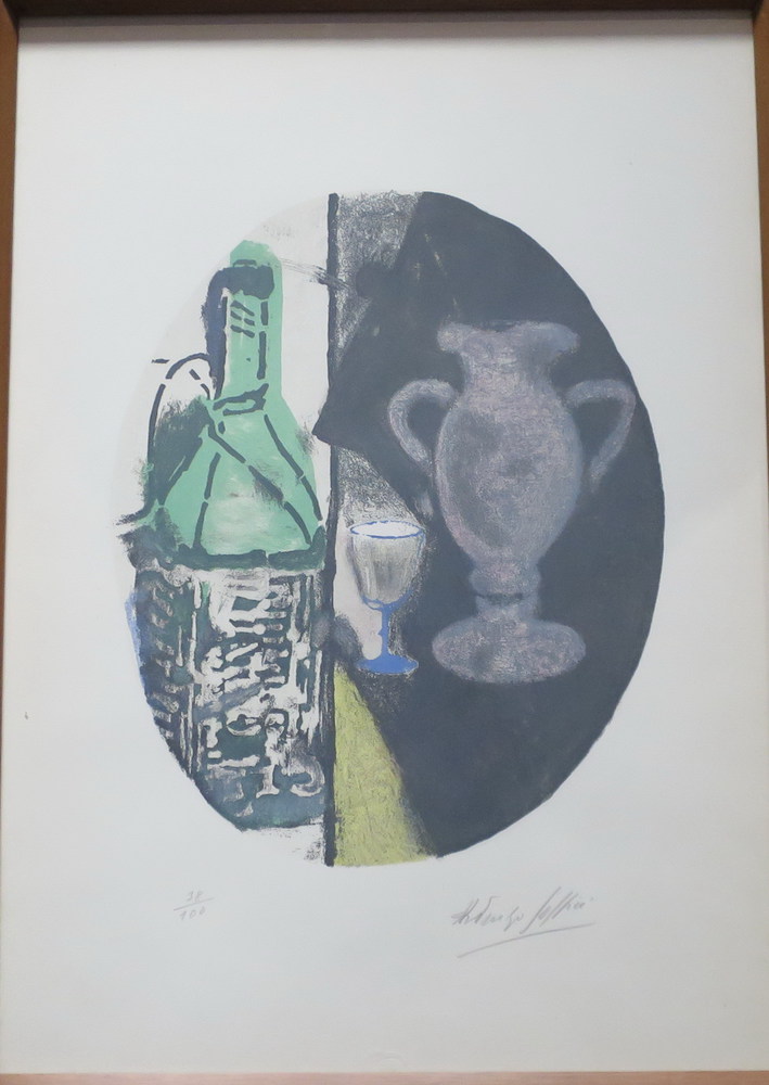 ARDENGO SOFFICI, Ardengo Soffici (1879/1964) litografia raff. "Vaso e bottiglia" - cm 45 x 64 - firmato in basso a dx - 38/100