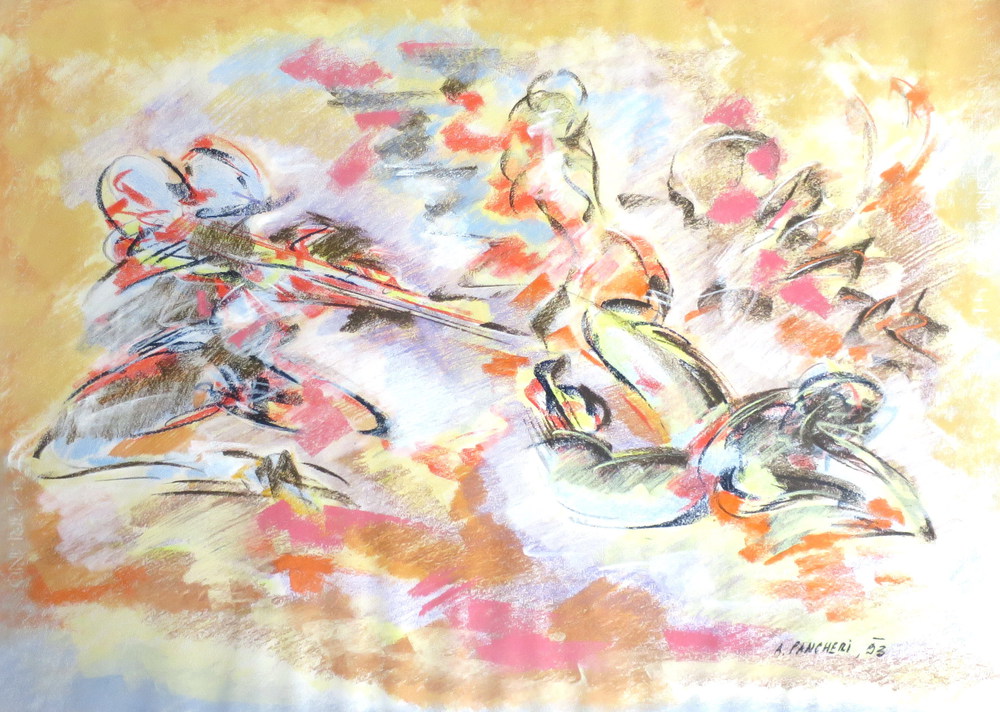 Lotto 135 | ALDO PANCHERI, Aldo Pancheri tempera su carta raff. "figure" - cm 69.5 x 49.5...