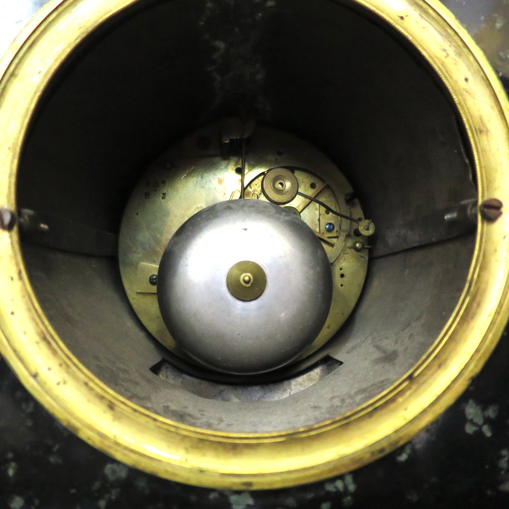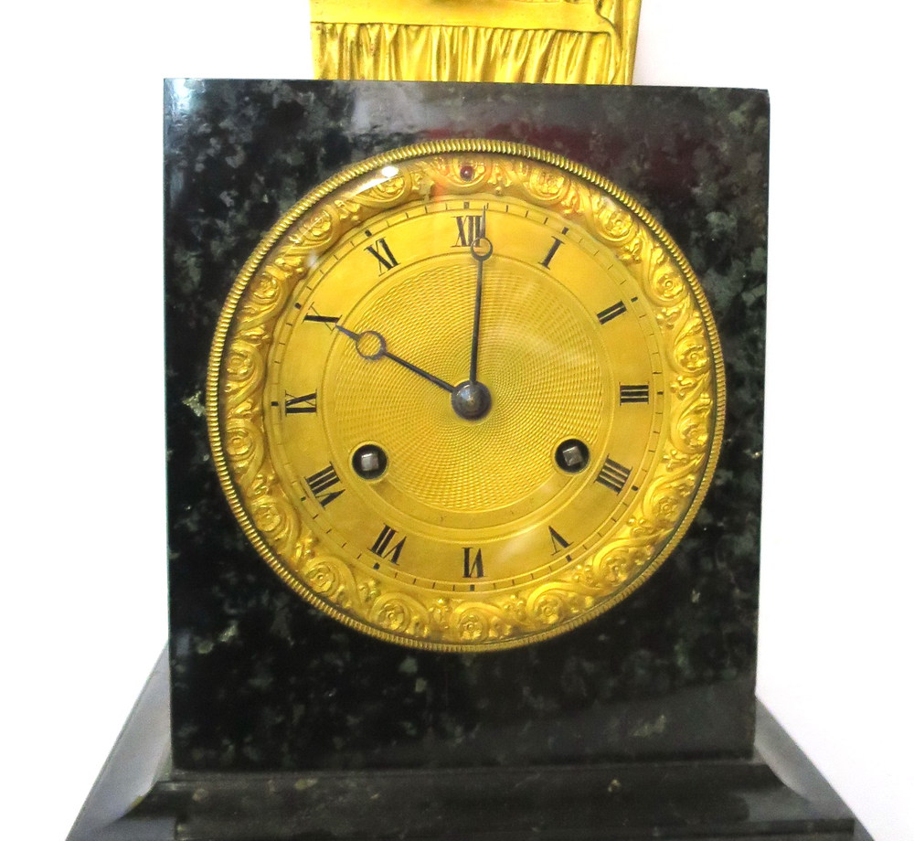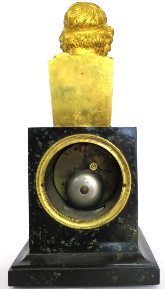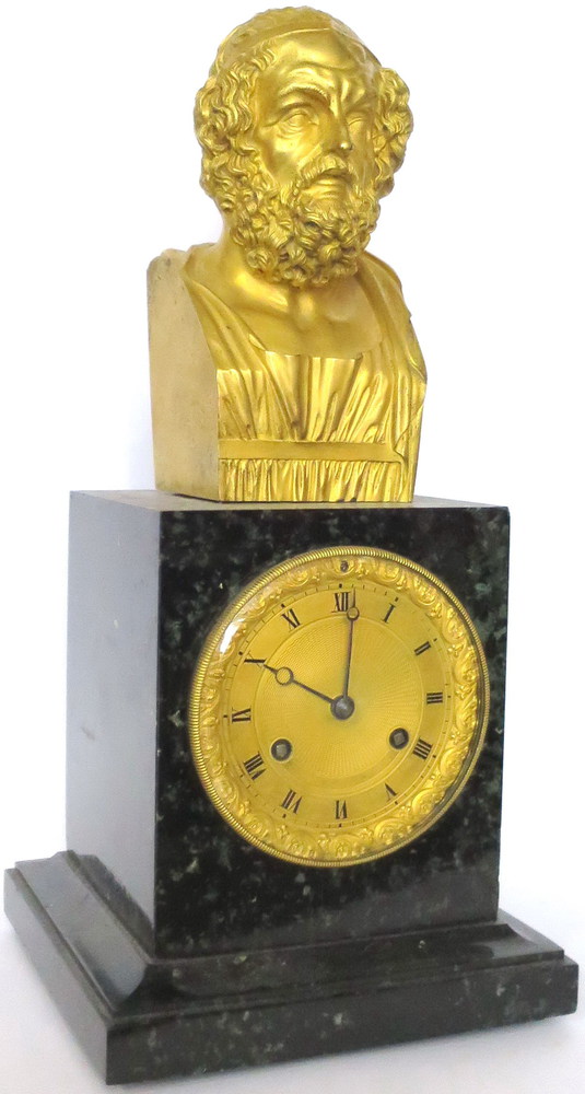 SCULTURA, Scultura in bronzo dorato raffigurante busto di "Socrate" su plinto in marmo con orologio altezza cm 43