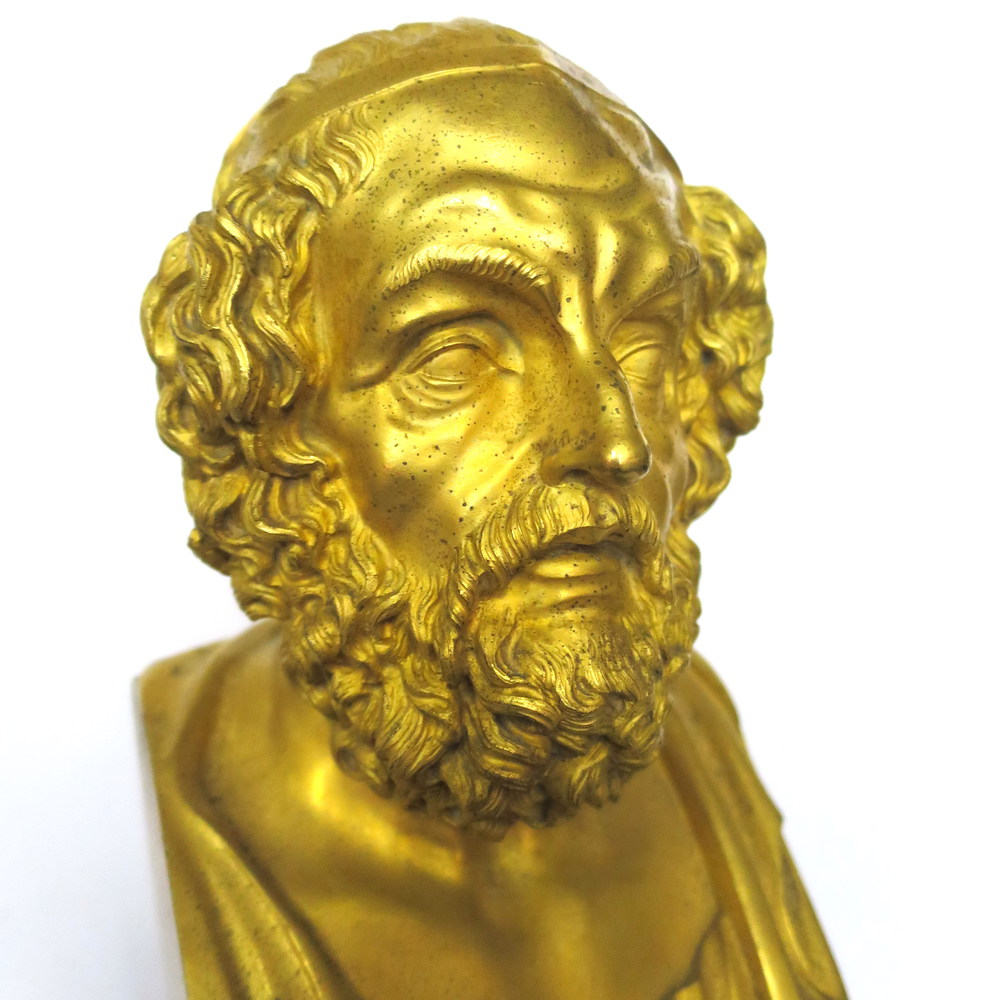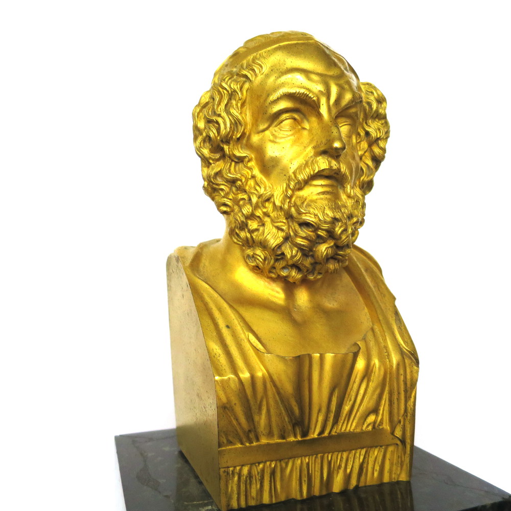 SCULTURA, Scultura in bronzo dorato raffigurante busto di "Socrate" su plinto...