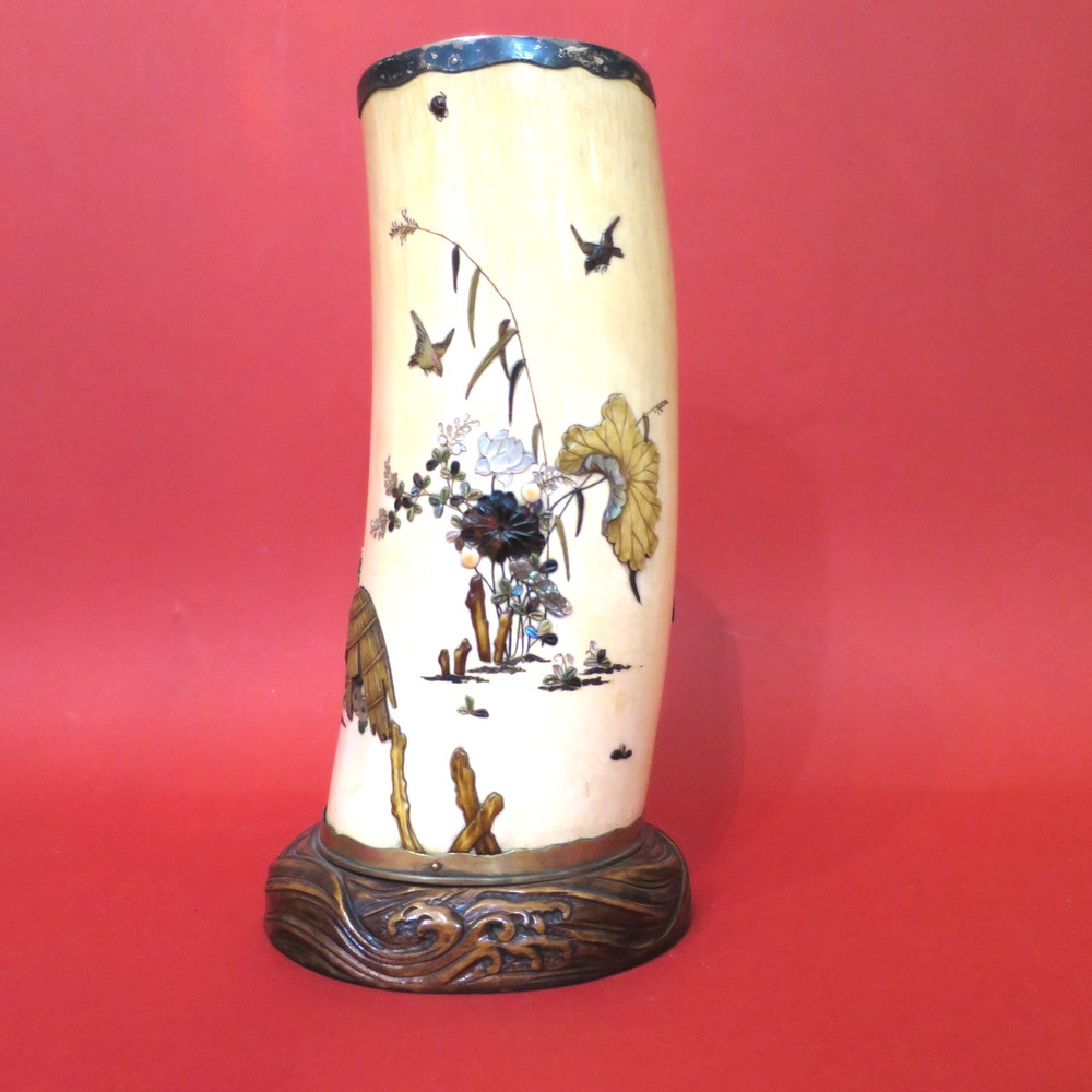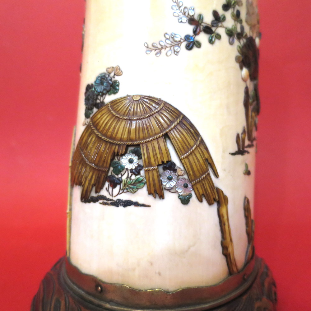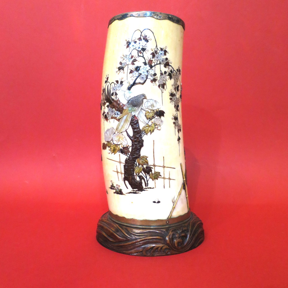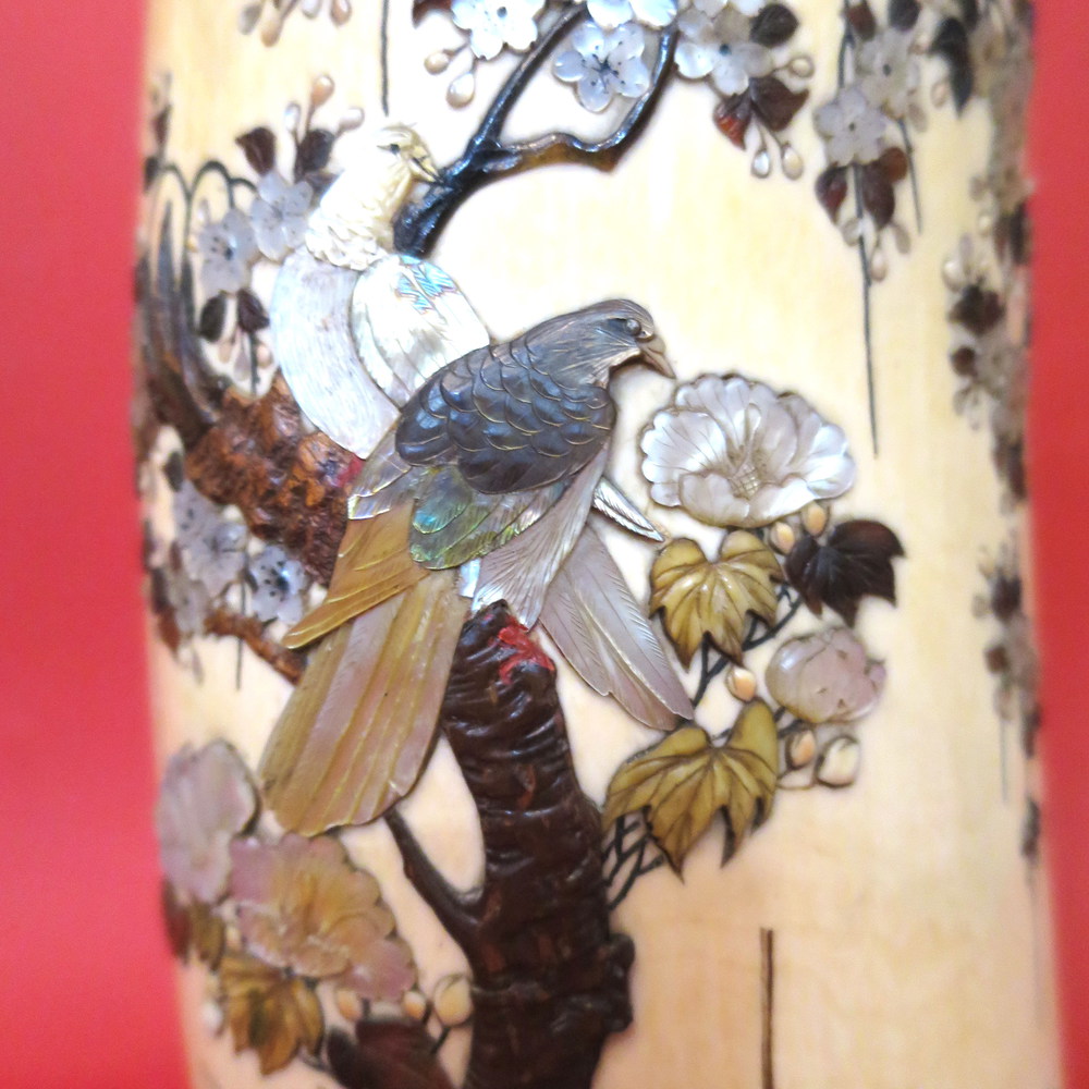 AVORIO, Avorio tecninca shibayama con decori in madreperla e pietre semipreziose - h 23 cm - Giappone periodo Meiji