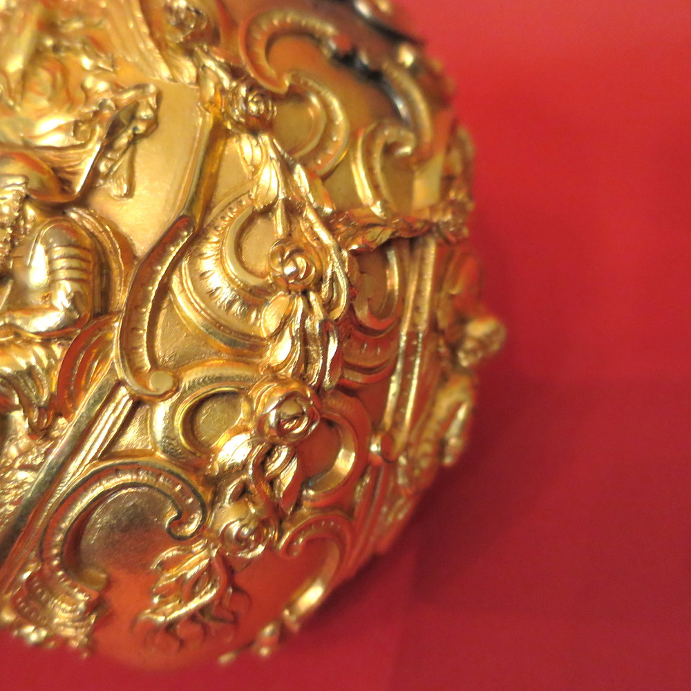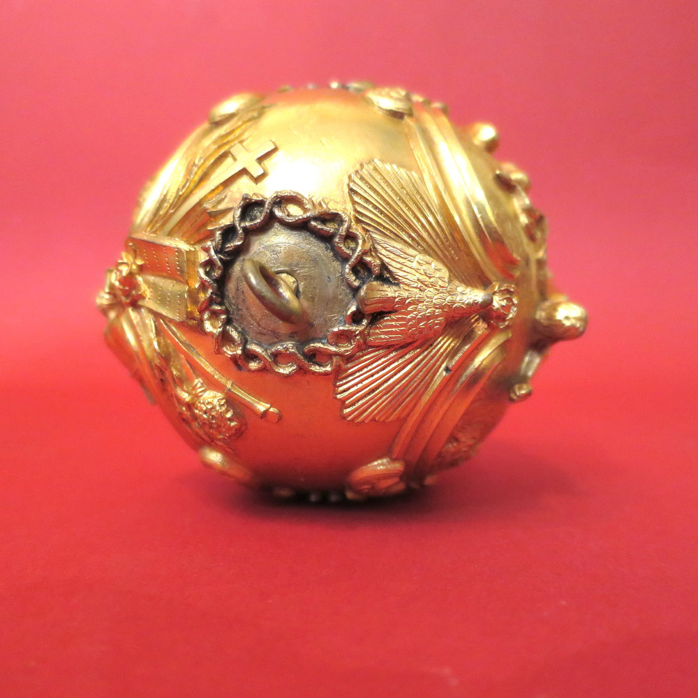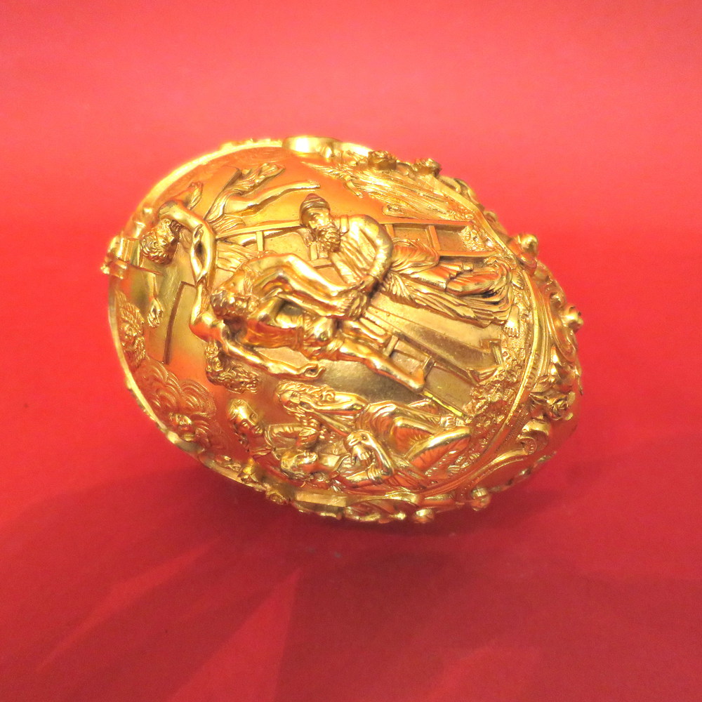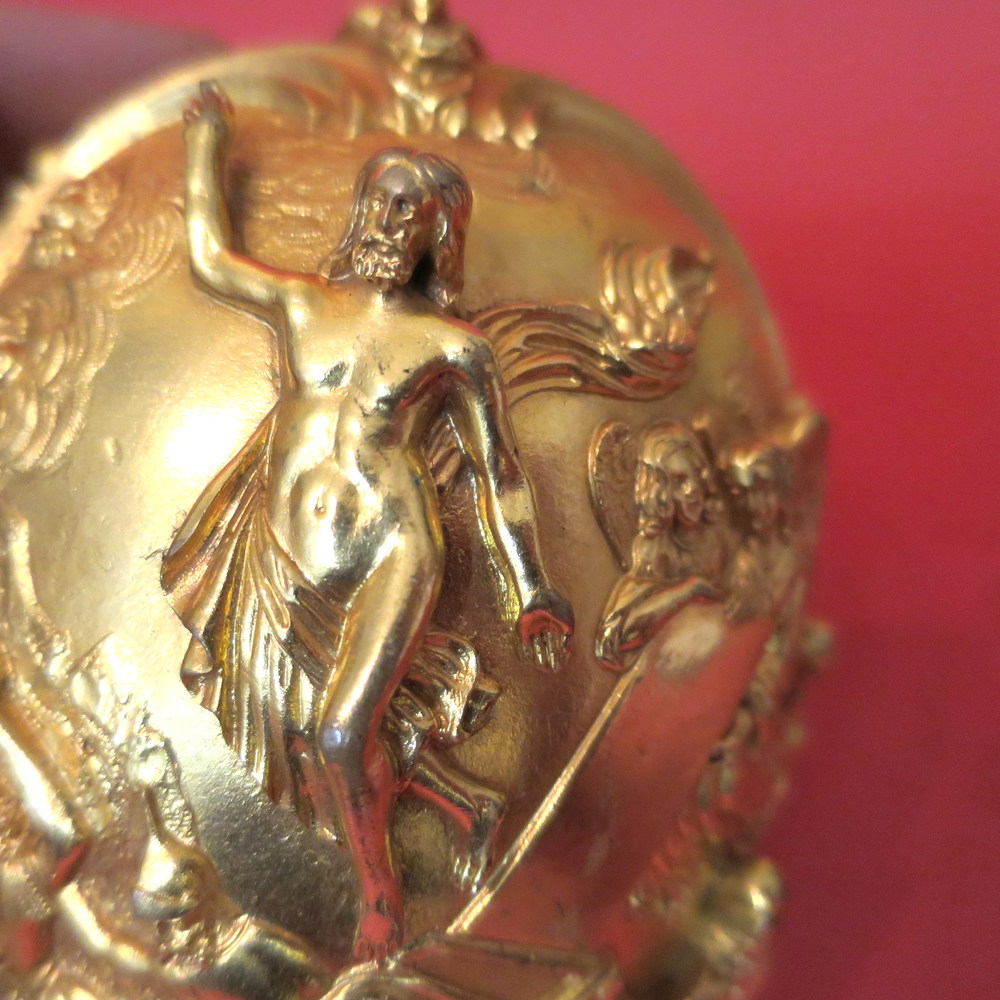 Lotto 215 | BRONZO, Uovo in bronzo dorato finemente cesellato raff. "Deposizione e...