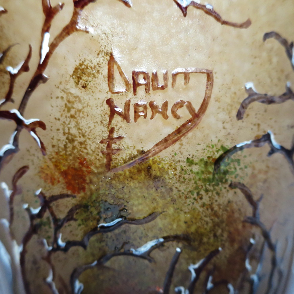 VASO, Vaso cachepot vetro cammeo inciso a rilievo "bosco innevato". Daum...
