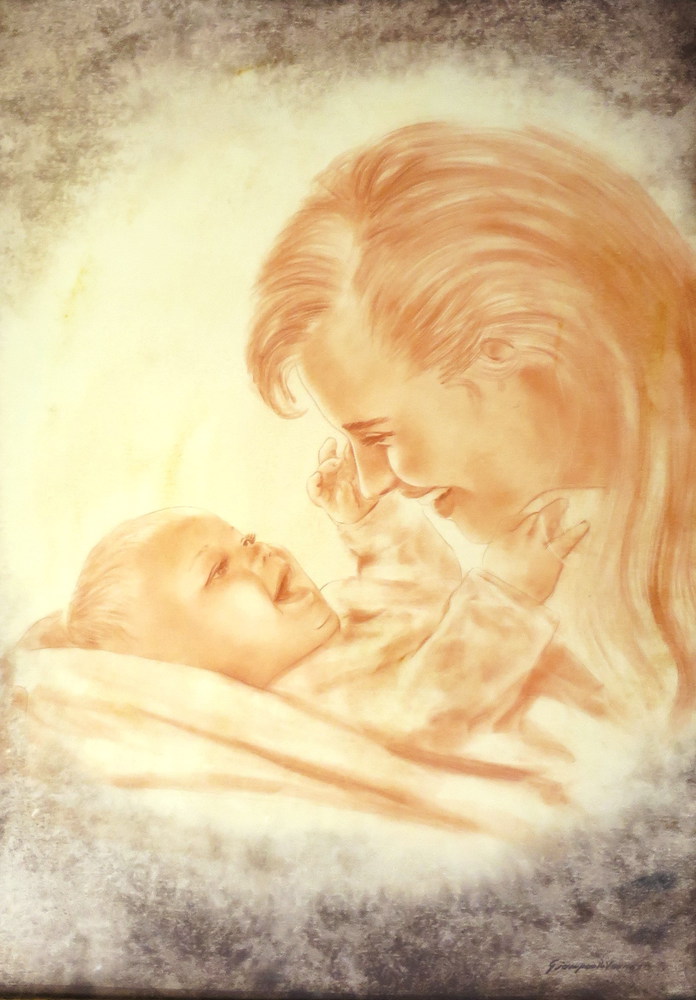 GIANPAOLO VANNUCCI, Disegno su carta sanguinea raff."mamma con bimbo" - cm...