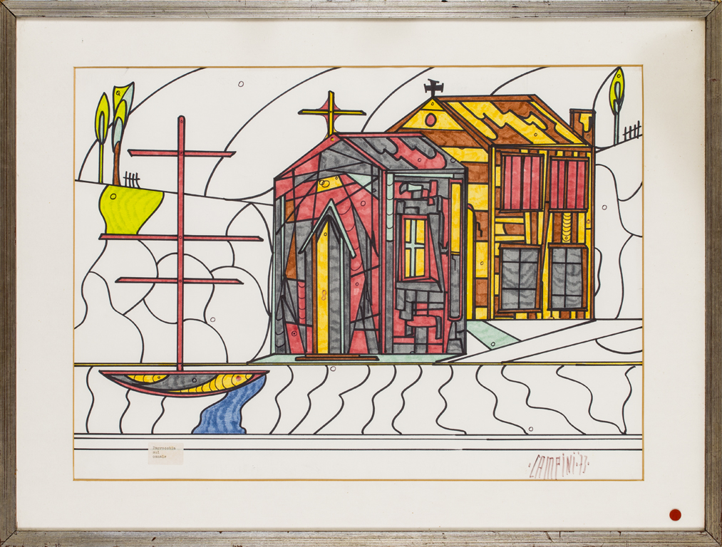 MARCO CAMPINIParrocchia sul canale, 1973Tecnica mista su cartacm 47x65Firma,...