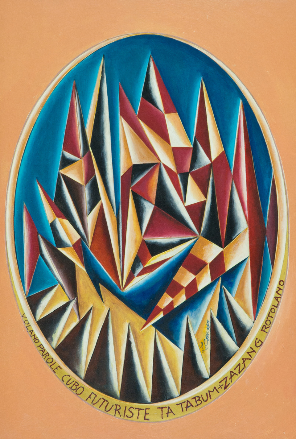 Luca Chessa Volano parole cubo futuriste Tecnica mista su carta, cm. 48x35 Firmato in basso a destra.