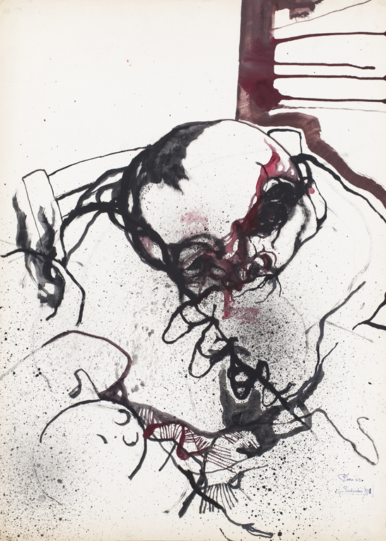 GIULIANO PINI (1935-2017)Suicidio N.1, 1962Tecnica mista su cartacm...