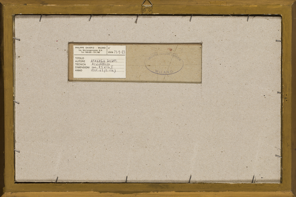 Etichetta e timbro della Galleria Philippe Daverio (MI) al retro del cartoncino