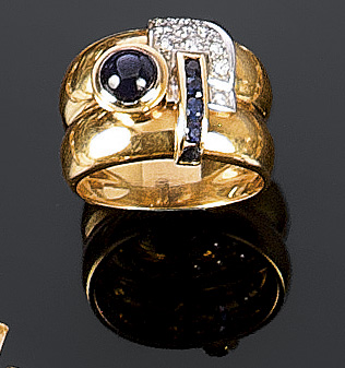 Lotto 264 | ANELLO Anello in oro giallo, a fascia, con zaffiro taglio cabochon, fila di...