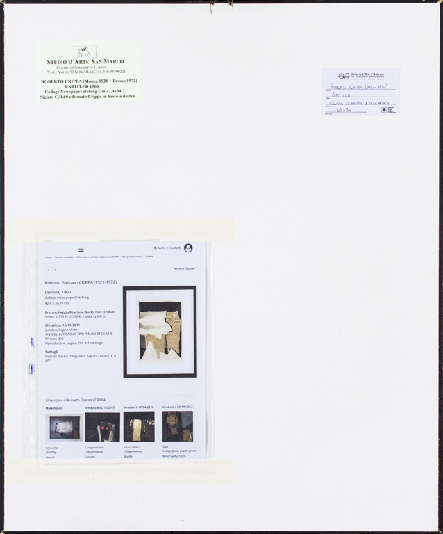Lotto 545 | ROBERTO GAETANO CRIPPA (1921-1972)Senza Titolo, 1960Acquaforte e collagecm...
